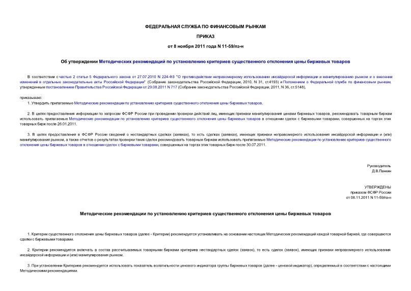 Утвержден: ФСФР России; Федеральная служба по финансовым рынкам, 08.11.2011