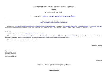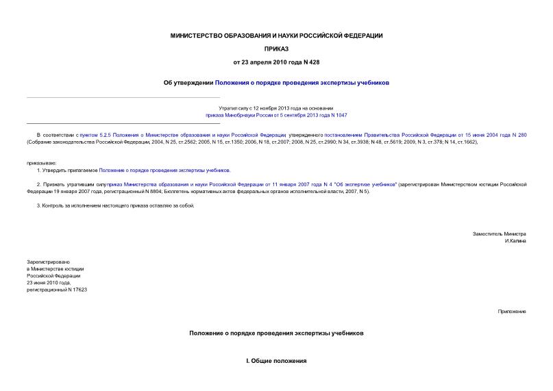 Утвержден: Минобрнауки России; Министерство образования и науки Российской Федерации, 23.04.2010