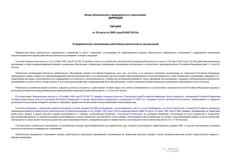 Утвержден: ФОМС; Федеральный фонд обязательного медицинского страхования, 30.08.2000
