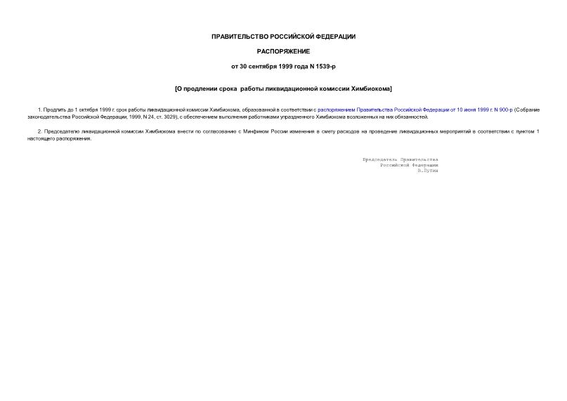 Тип: Распоряжение 1539-р