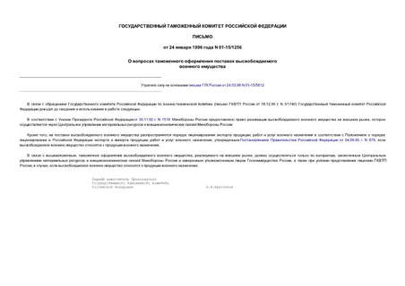 Утвержден: ГТК России; Государственный таможенный комитет РФ, 24.01.1996