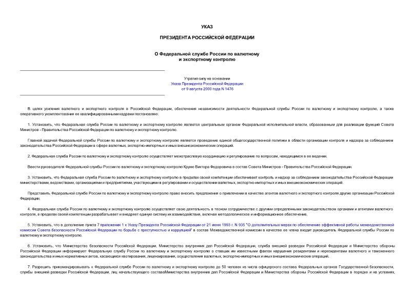 Утвержден: Президент РФ; Президент Российской Федерации, 24.09.1993