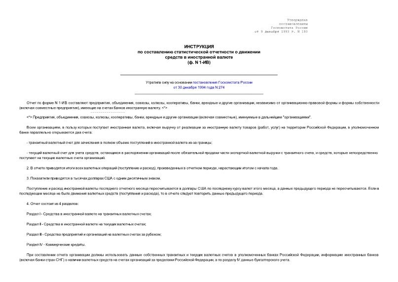 Утвержден: Госкомстат России; Государственный комитет РФ по статистике, 09.12.1993