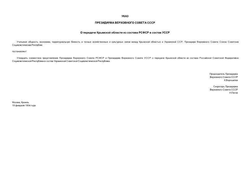 Утвержден: Президиум Верховного Совета СССР, 19.02.1954